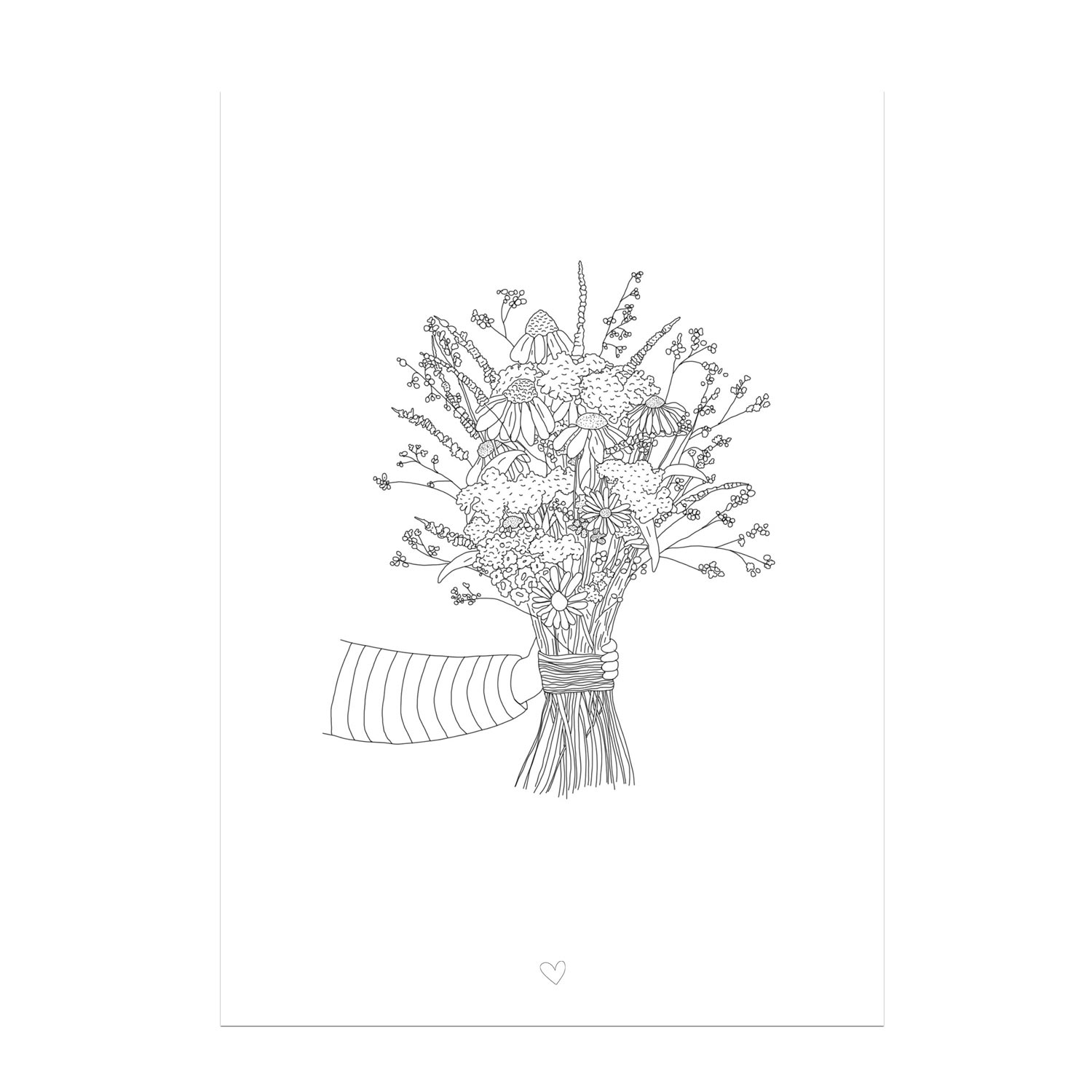 Wenskaart met bos bloemen zwart wit