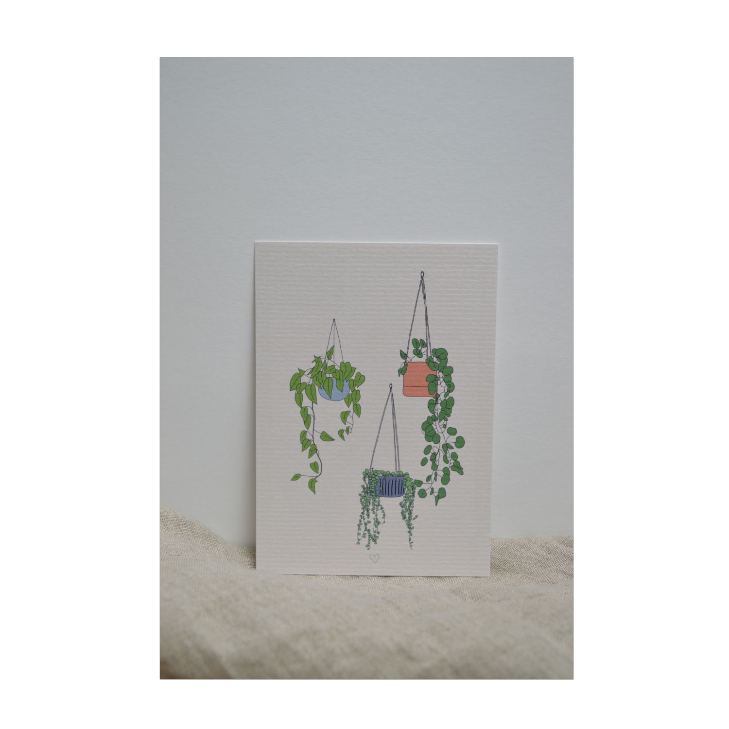 Ben jij een echte plantlover? Dan is deze kaart iets voor jou! Deze plantjes hebben in elk geval geen water nodig 😉 Stuur deze blanco wenskaart zomaar naar iemand of geef hem een mooi plekje in huis. De hangplanten zijn handgetekend en hierdoor uniek.