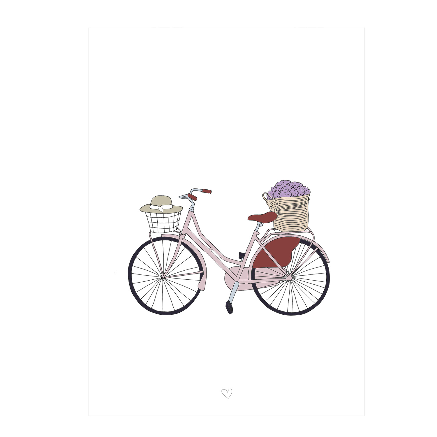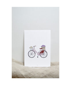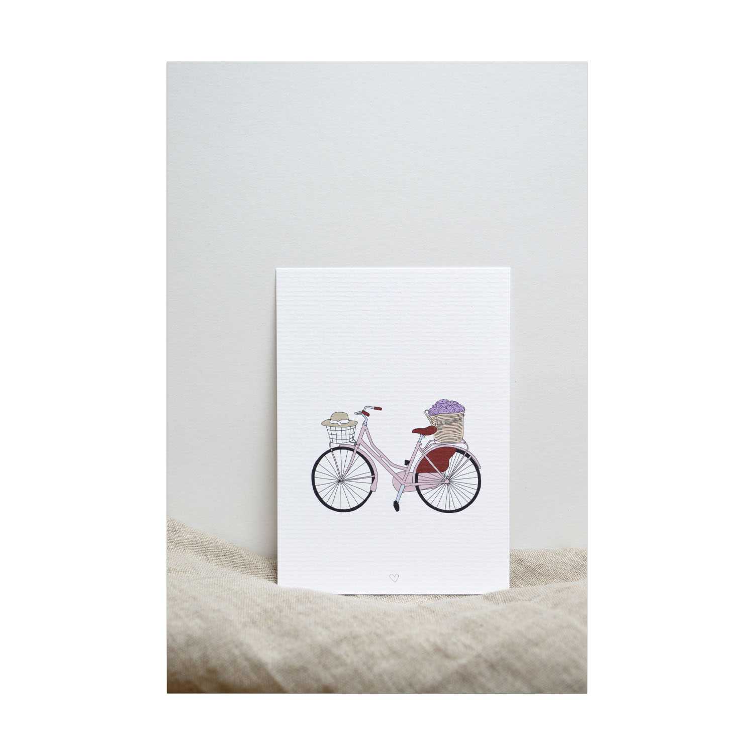 Een wenskaart van Letters & Lijnen met een handgetekende illustratie van een roze fiets met een mand bloemen achterop. De kaart is verder blanco en kun je dus voor veel gelegenheden gebruiken. Gebruik ‘m aan een cadeau of verstuur hem in de bijpassende kraft envelop. Deze kaart is ook geschikt om te sturen om iemand op te vrolijken of sterkte te wensen.