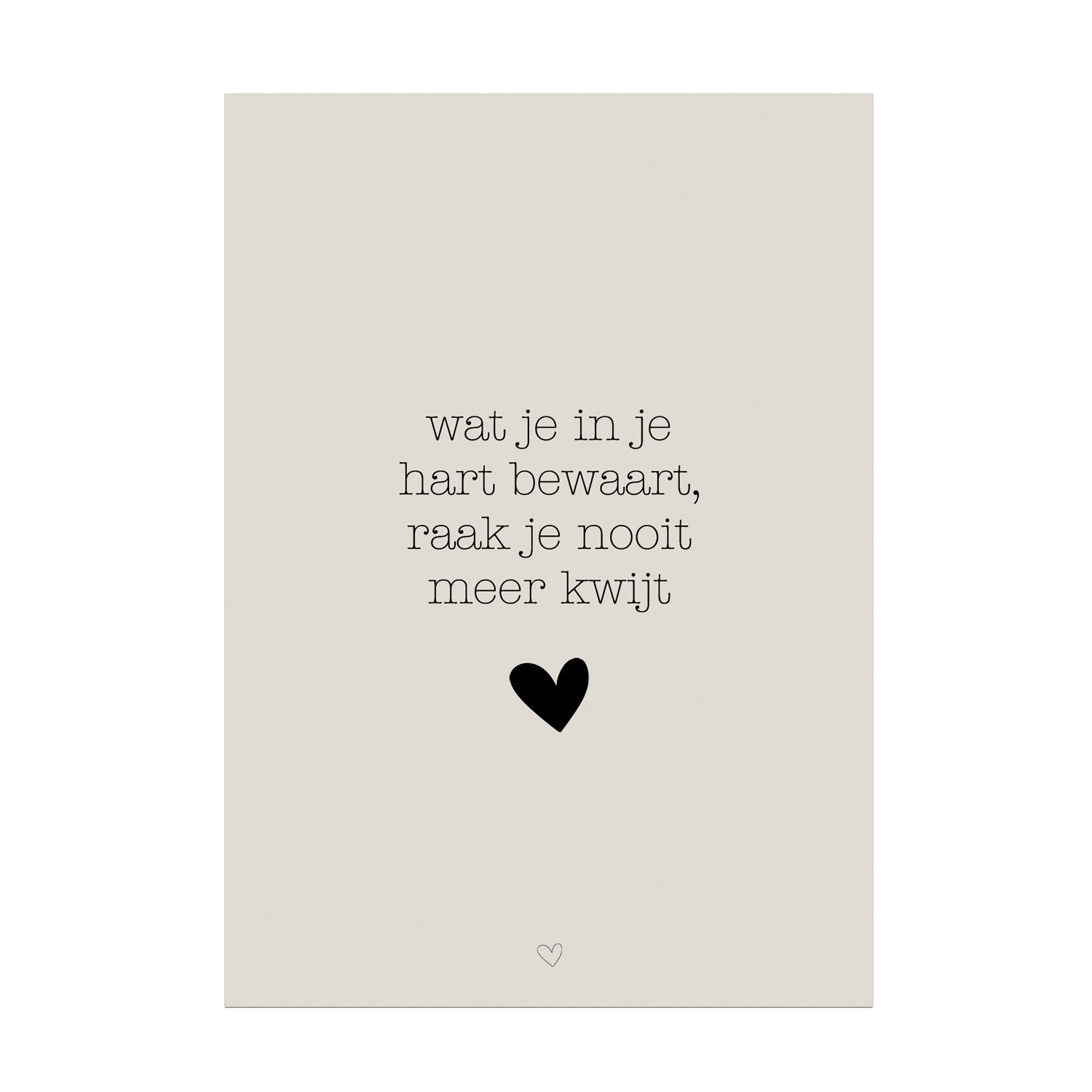 Wenskaart met tekst Wat je in je hart bewaart, raak je nooit meer kwijt
