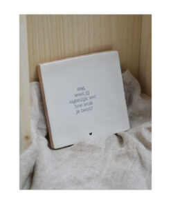 Bij Letters & Lijnen vind je veel unieke tegeltjes met een hip en eigentijds ontwerp. De tegeltjes zijn handgevormd en leuk om in je interieur neer te zetten. Elk tegeltje wordt met liefde met de hand voorzien van een tekst of illustratie. Geen een tegeltje is 100% hetzelfde! Het tegeltje is voorzien van een laklaag, maar neem het alleen af met een droge doek. Zo blijft het tegeltje het langst mooi.
